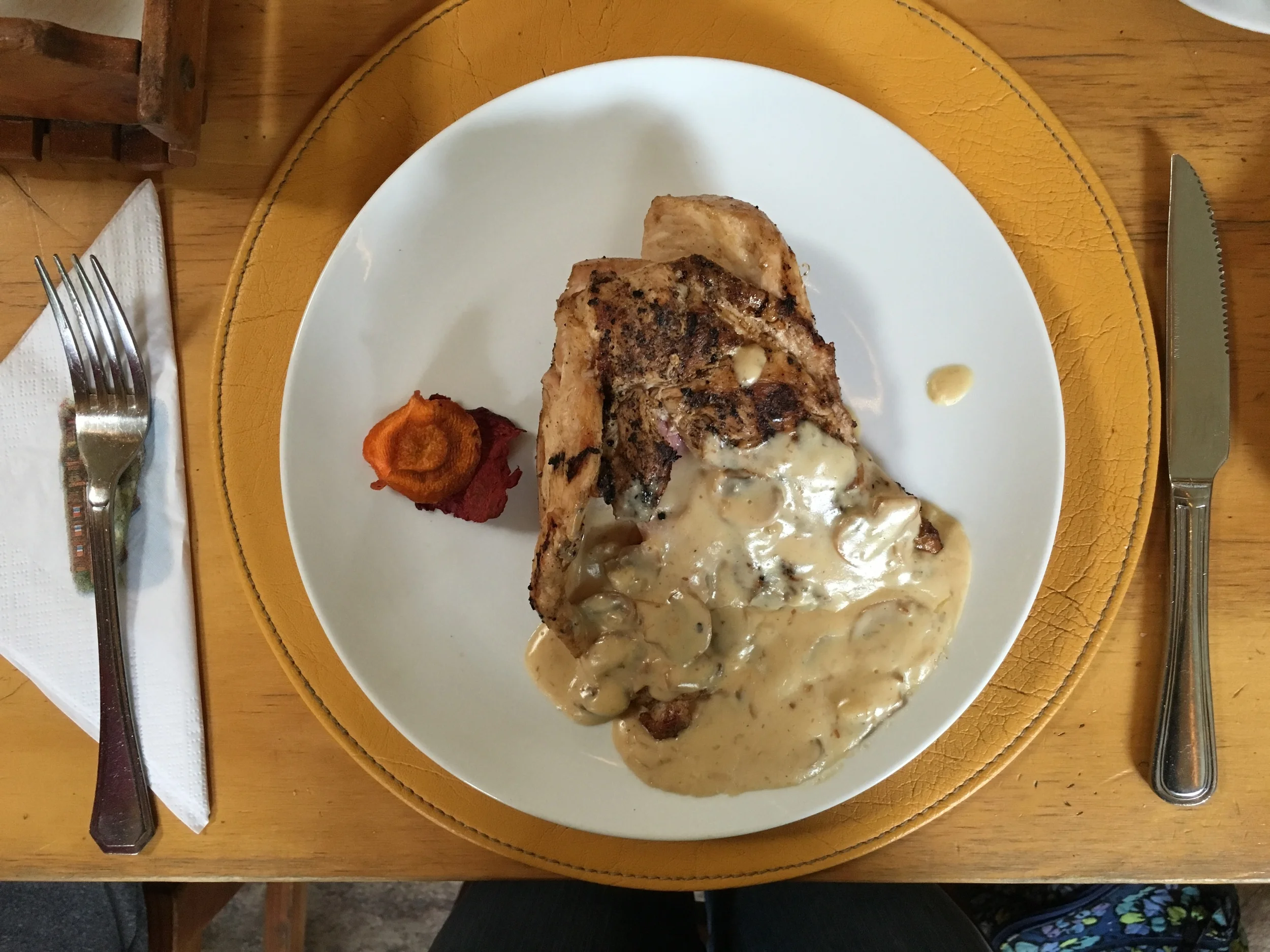 At Casa Bosque I enjoyed a juicy boneless chicken breast with a mushroom cream sauce that I am still dreaming about today.